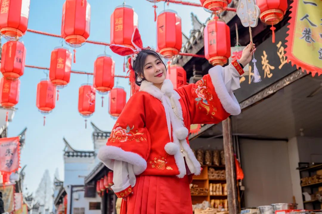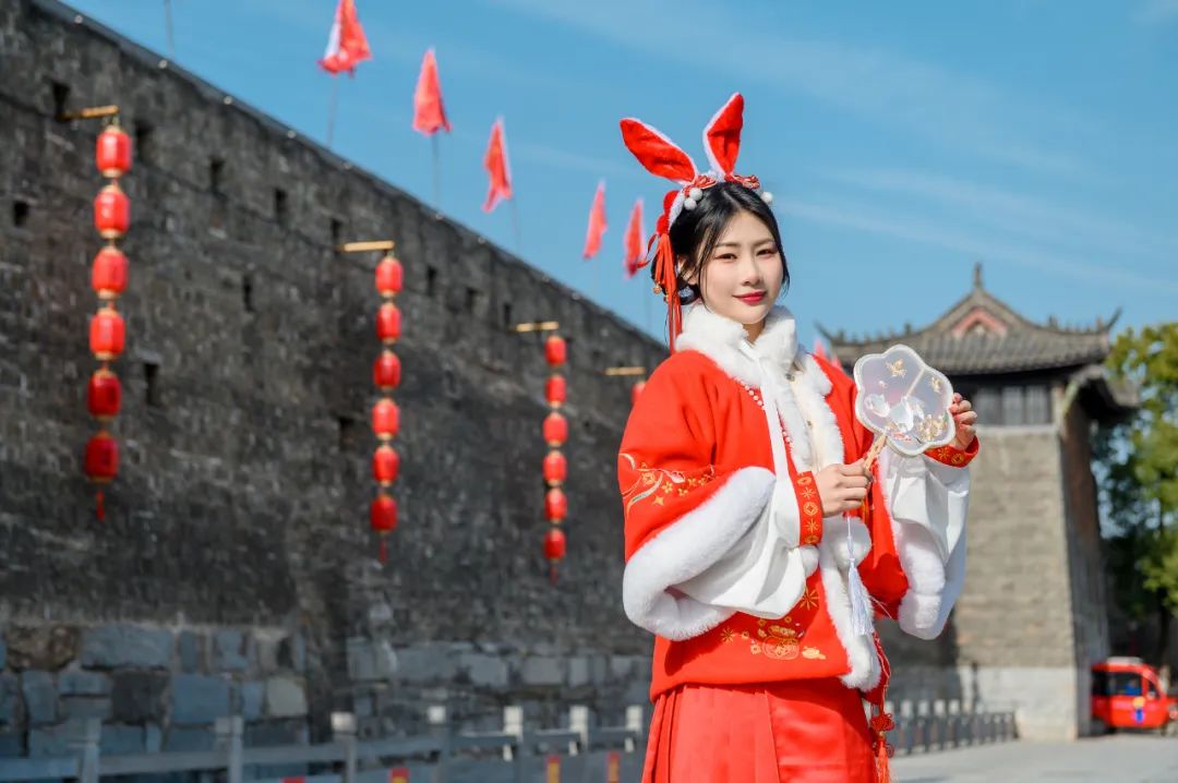 新春佳節(jié),古鎮(zhèn)徽韻建筑造型牽手兔年喜慶美陳,讓你感受春節(jié)濃厚氛圍。
