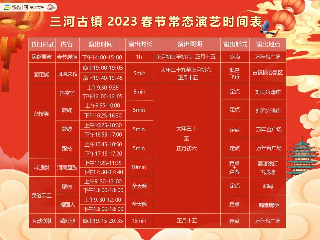 打鐵花、鬧花船、黃梅戲、廬劇……在三河古鎮(zhèn)以往的活動中,以地方戲曲、民俗、非遺等多元表現(xiàn)形式,為游客們奉上一道有著“地道的徽聲皖韻”的原生態(tài)“年夜飯”。新春佳節(jié)將至,景區(qū)推出“錦繡三河,兔歲添?!毖菟嚮顒?,將肥西地域文化特色符號和節(jié)慶元素融入到節(jié)目中,演繹金兔賀歲?盛世三河。