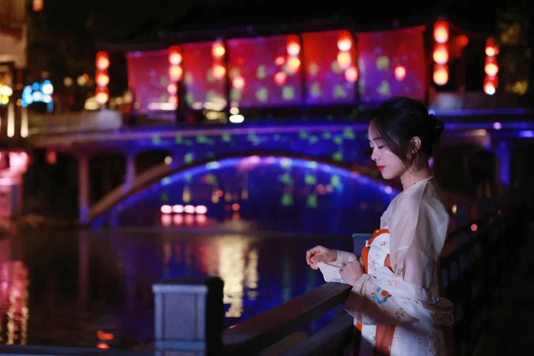 充分挖掘并凸顯出每座橋梁所承載的不同寓意與功能,盡顯燈影交織下的絢麗多姿,形成豐富的視覺(jué)印象,彰顯千年古鎮(zhèn)的文化和歷史韻味。