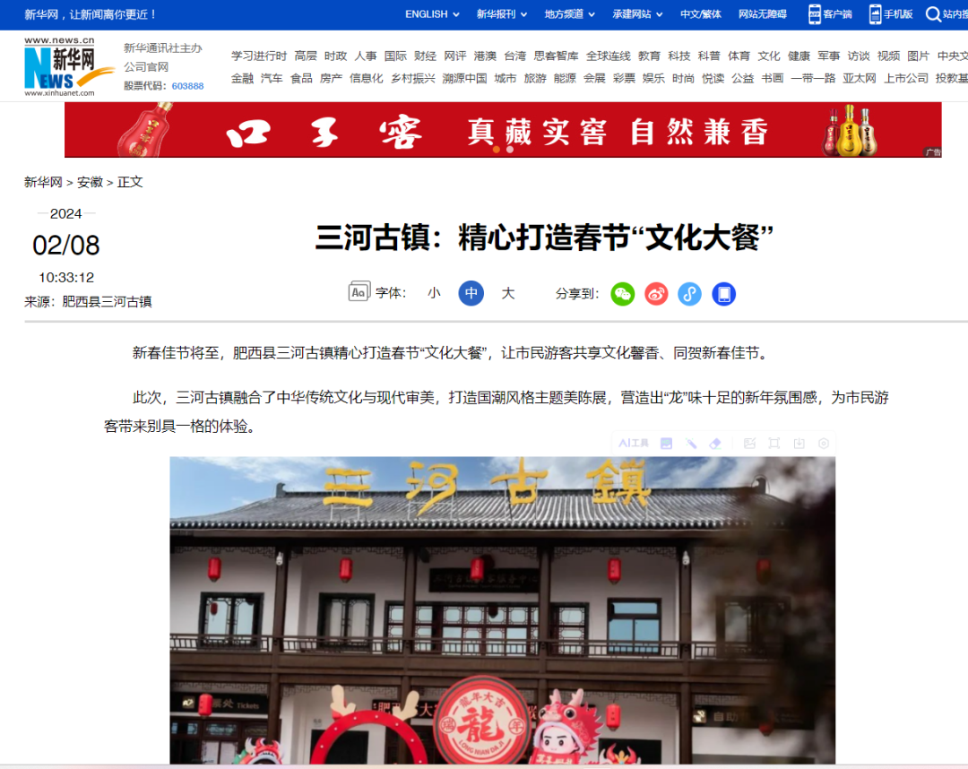 合肥日?qǐng)?bào)、合肥新聞聯(lián)播等多家官網(wǎng)媒體平臺(tái)紛紛聚焦三河古鎮(zhèn);