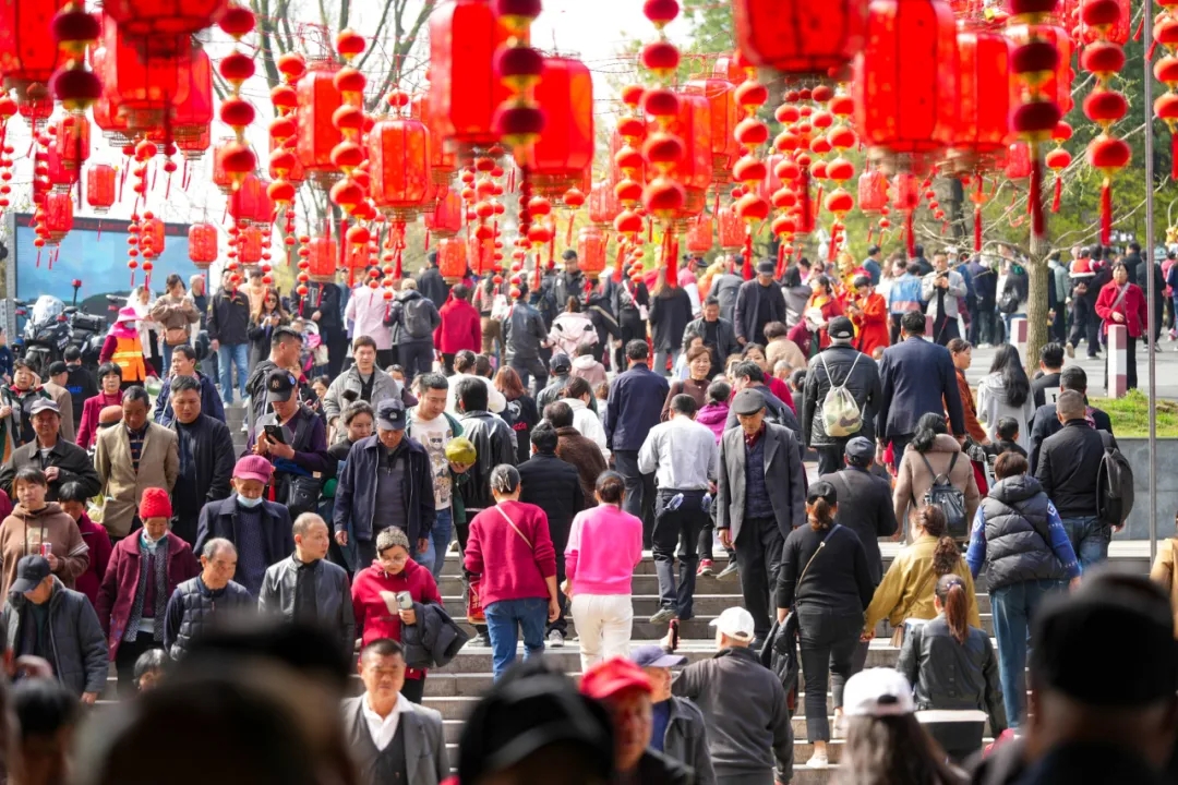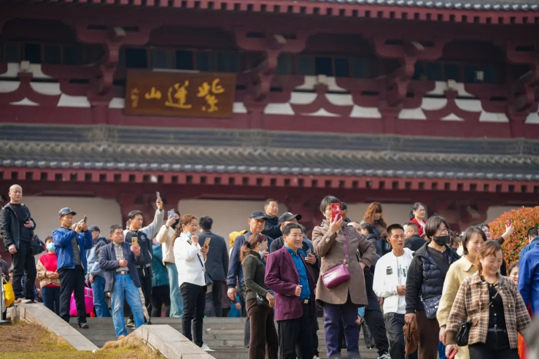 3月27日零時,紫蓬山活動現(xiàn)場煙火繚繞,人頭攢動,四面八方的游客帶著對未來生活的美好向往和期許,聚集紫蓬山西廬寺前。