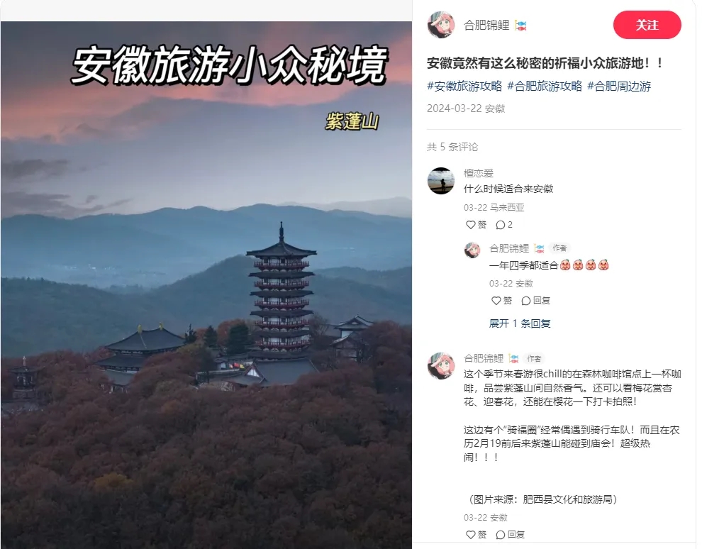 除此以外,還有多名小紅書達(dá)人宣傳帶#紫蓬山#、#紫蓬山廟會#、#紫蓬山民俗文化周#等相關(guān)活動話題,總曝光瀏覽量32W,再次引發(fā)社會關(guān)注。