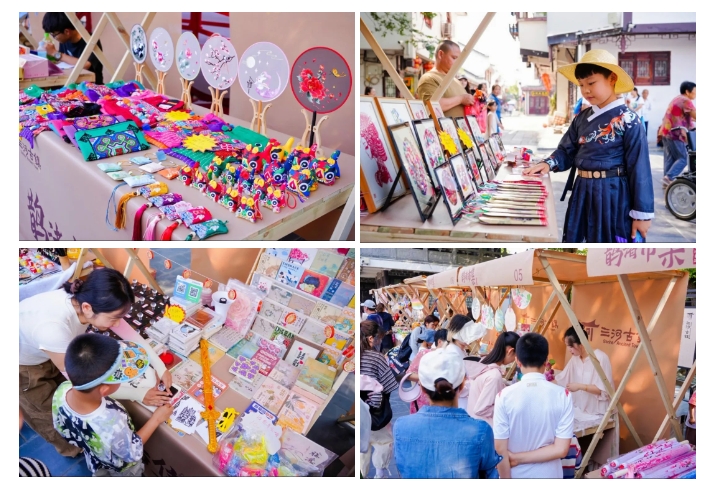 端午同步推出了鵲渚市集活動(dòng),各種精美藝術(shù)織物、國風(fēng)及非遺手工藝品琳瑯滿目,游客目不暇接,口袋里的錢快要捂不住啦!