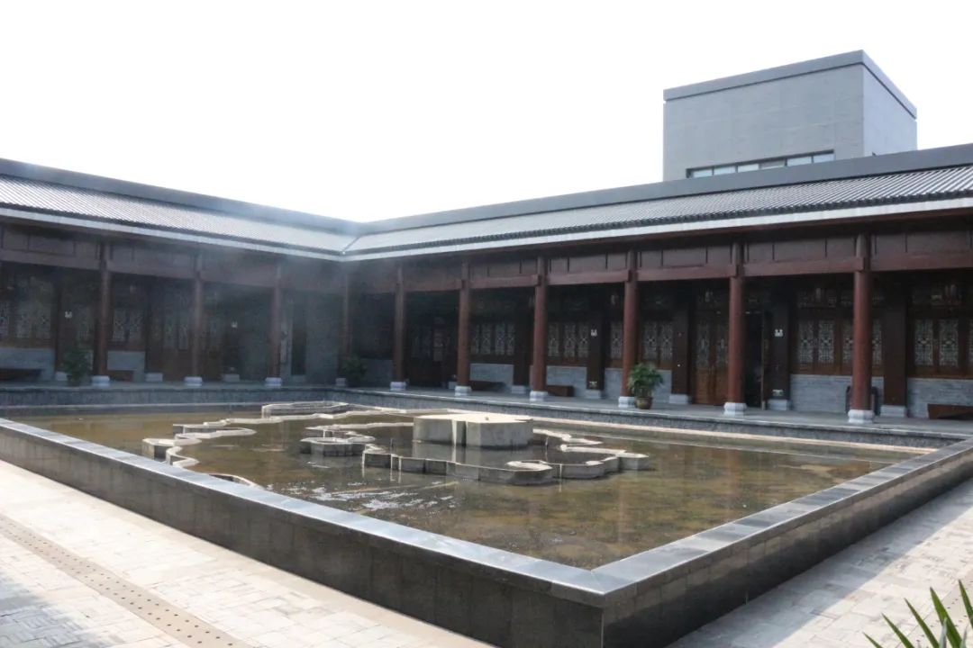 紀念館以江淮民居建筑元素為主線,采用四水歸堂院落式布局,院落中央蓄水建臺,突出大陸、臺灣、肥西地圖形狀。同時,又以紀念館為中心,空間上形成與劉銘傳故居、臺灣、劉銘傳墓園的聯(lián)系,突出劉銘傳從出生到保衛(wèi)臺灣、建設(shè)臺灣,以及逝世后歸葬大潛山的人生軌跡。